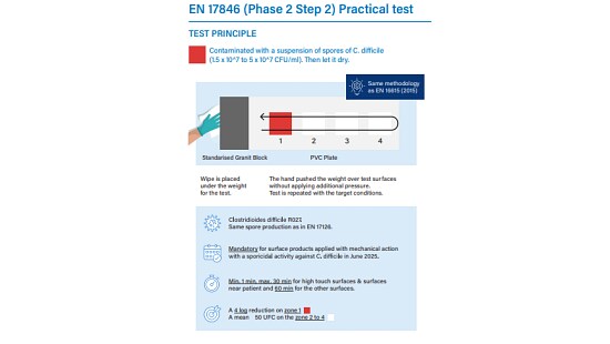 - New standard EN 17430 complements the phase 2 step 1 and is a quantitative suspension test in which the effectiveness against various microorganisms is determined with an additional protein load. Phase 2, step 2 tests are practical tests carried out directly on volunteers’ hands.